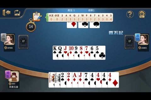 牌数: 一副牌 54 张,一人 17 张,留 3 张做底牌。